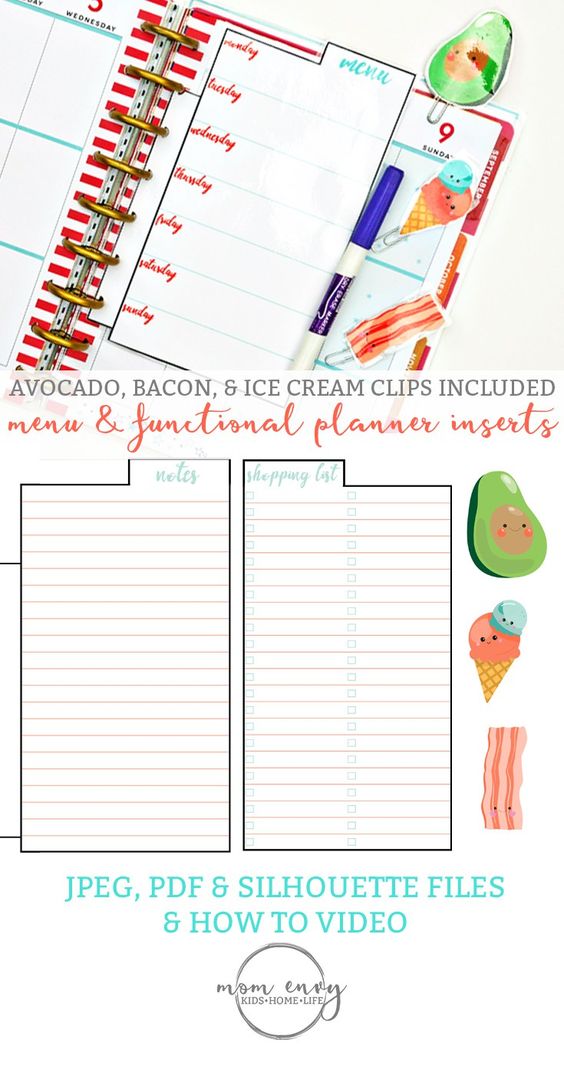 Free Planner Inserts and Planner Clips: Menu & Functional Inserts & Clips