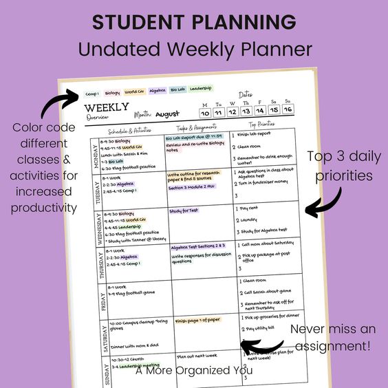 College Student Weekly Planner Printable Student Planner | Etsy