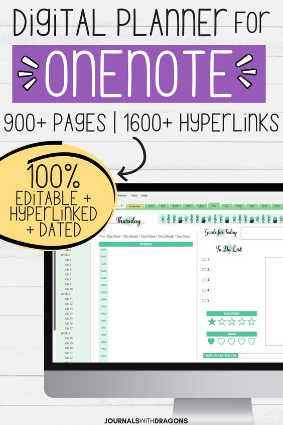 Editable OneNote Digital Planner – 2023 + 2024 (Cacti Green Template)