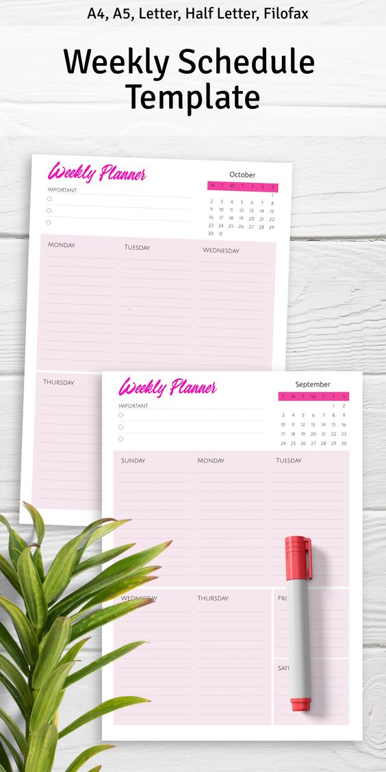 Weekly Schedule Template, Weekly Planner Printable, Productivity Planner, Planner Ideas