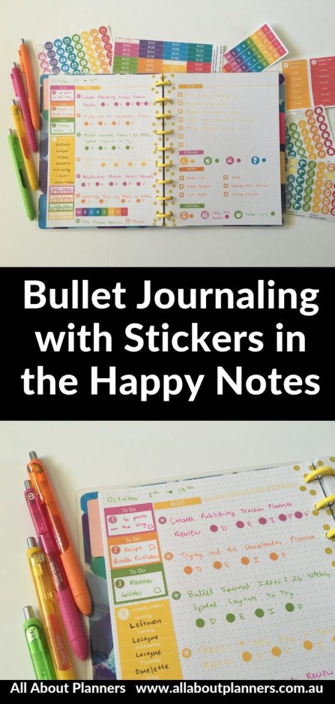 Bullet journaling with planner stickers in the Happy Notes Book