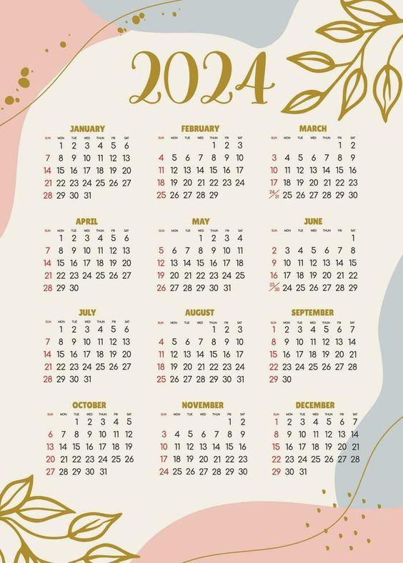 Calendar 2024 – All months – National Holidays. Calendar commemorative dates and holidays