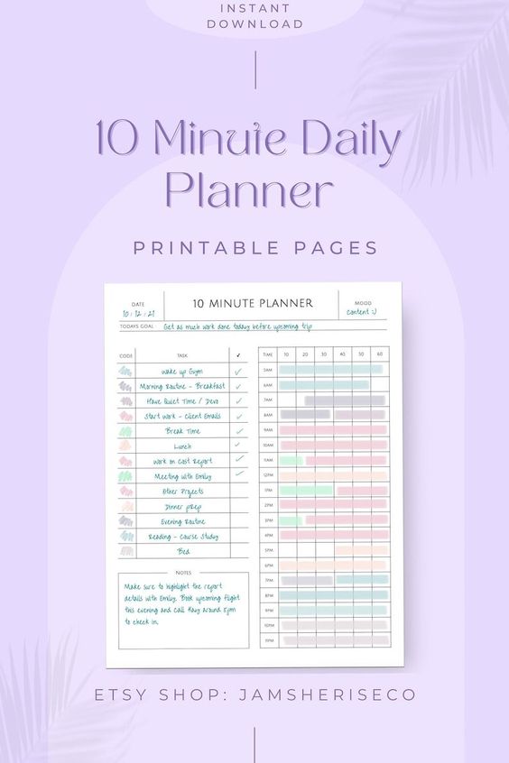 10 Minute Planner Printable Pages, Use for Daily Work Schedule and Daily Student Planner