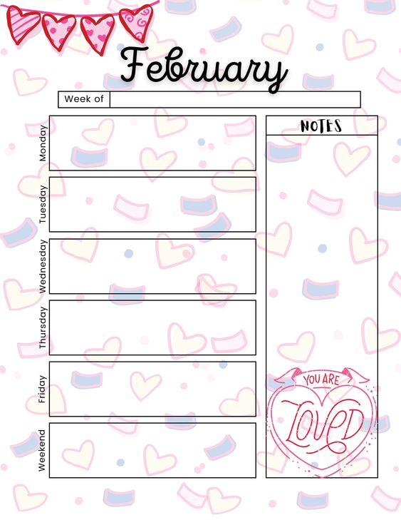 Happy Planner Weekly Agenda Organizer Pages and Divider – February – Hearts