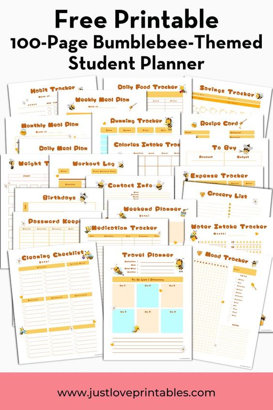 Free 100-Page Bumblebee-Themed Student Planner Printable