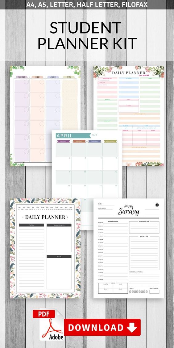 Student Planner Kit, Planner Template, Work Planner Printable, Planner Pdf, Planner Lists Ideas