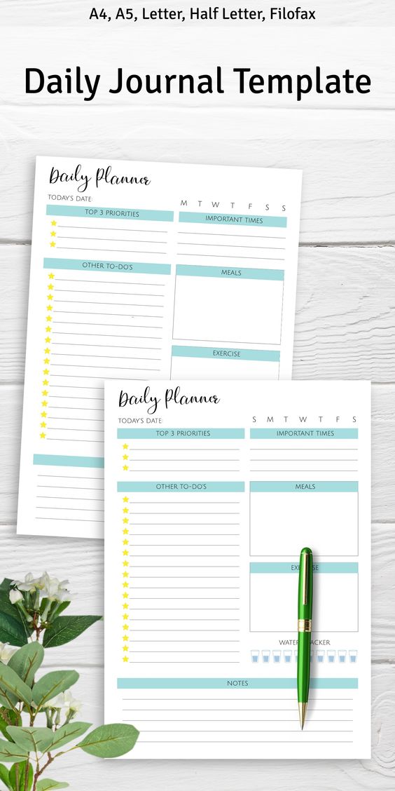Daily Journal Template, Day Planner, Schedule Templates Aesthetic, Diy Planner Notebook Layout