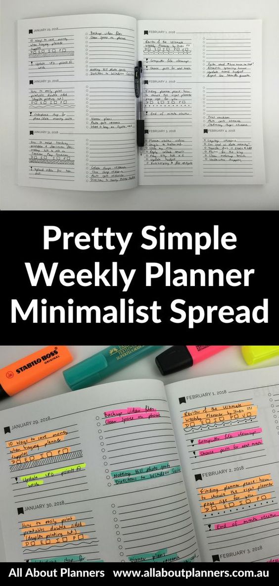Color coded weekly spread using highlighters in the Pretty Simple Planner