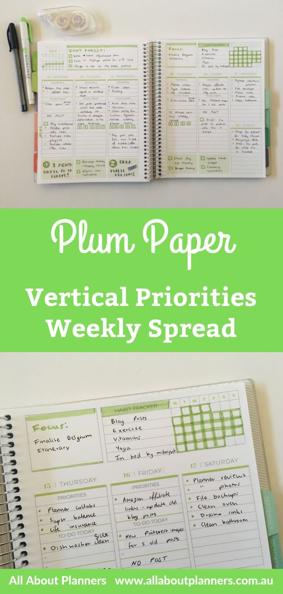 Green themed spread in the Plum Paper Vertical Priorities Weekly planner