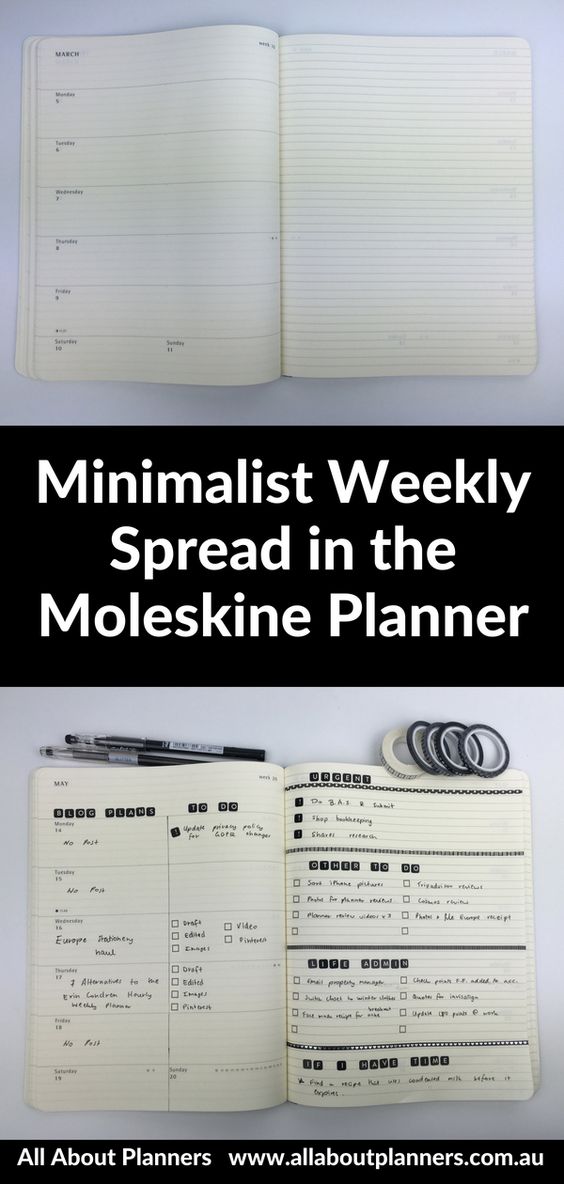 Minimalist black and white weekly spread in the Moleskine Weekly Planner